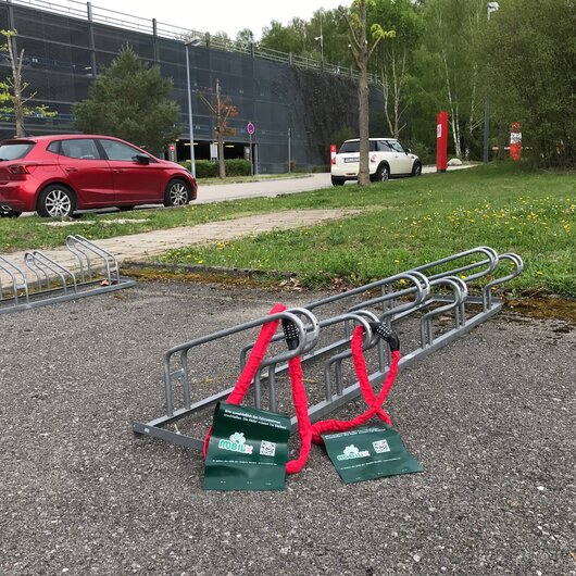 Schließe dein Rad mit deinem Schloss an das rote MobiliX-Schloss an – sicher und unkompliziert.